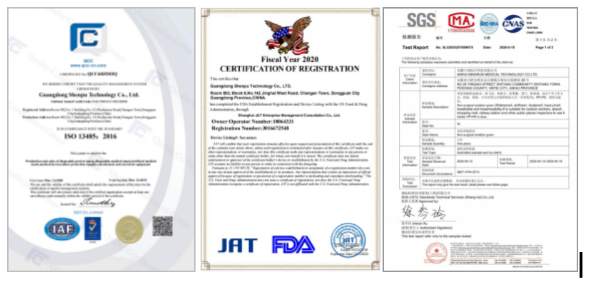 The raw materials used in non-woven surgical togas are SMS non-woven fabric, peritoneal non-woven fabric, and kapok non-woven fabric. Sewing methods include ultrasonic wireless heat sealing and wired sewing with sewing machine. The conventional specifications are 120 cm * 120 cm, 120 cm * 140 cm, and 120 cm * 150 cm.